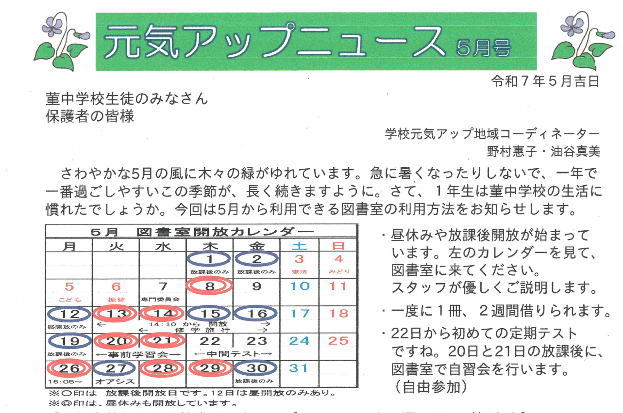 2.図書室利用方法等(詳細は、元気アップニュース5月号)