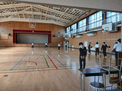 グラウンドでは体育委員会の人たちが、体育大会に向けてグラウンドの整地やライン引きなどをしてくれていました。ありがとうございます。慣れた手つきで対応をしてくれています。体育館では、バスケットボール部がシュート練習に励んでいました。頑張っています!