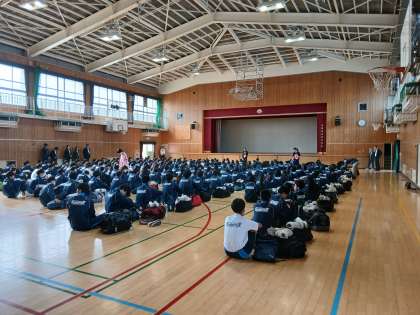 今日から3日間77期生の3年生は修学旅行に行きます。7時30分定刻通りスタートしました。式の中で、みんなで楽しむ修学旅行にしましょうとのお言葉がありました。一人の身勝手な行動でなく、みんなで協力し、楽しみ互いに笑顔になる修学旅行になるといいですね。