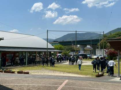 三野・東みよし地区の入村式です。緊張の様子も見られます。民泊先の皆様、2日間よろしくお願いいたします。