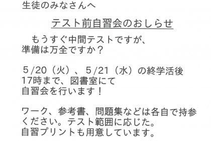 中間テストが迫ってきました!