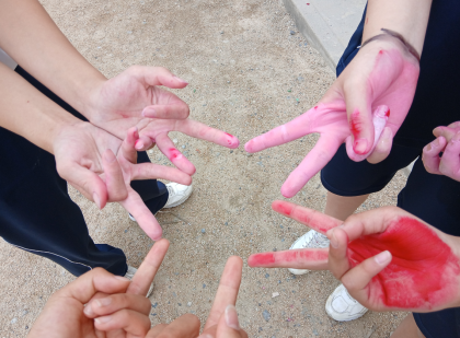 学級旗の取り組みを終え、後片付けをし、手を洗っている時にお邪魔しました。☆を作ってくれました。とても元気な79期生のみなさんでした!こんな言葉をいただきました。
