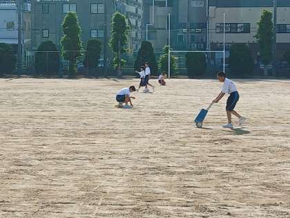 朝早くから体育委員が集合し、ライン引き等、整地をしてくれています。