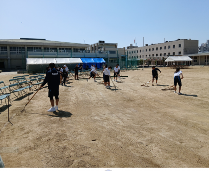 とてもきれいにしてくれました。生徒のみなさんだけでなく、先生方、教職員のみなさん、副校長先生も整地をしてくれました。ありがとうございました。