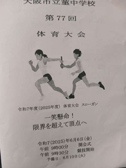 体育大会の今年度のスローガンは,一笑懸命!限界を超えて頂点へ