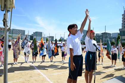 昨日、第77回体育大会が開催されました。暑い中でしたが、集中力を持ち、最後まで全力で取り組むことができました。競技だけでなく、応援、係の仕事など、みんなが一笑懸命取り組み、素晴らしい体育大会となりました!