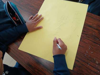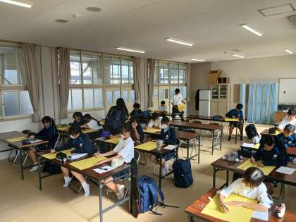 本日の放課後、社会を明るくする運動の標語の清書を行いました。推薦された生徒のみんさんが集合し、清書を行いました。素晴らしい作品ばかりです。