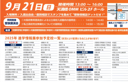 天満橋のOMMビル2Fホールで、中学高校進学個別相談会が行われます。