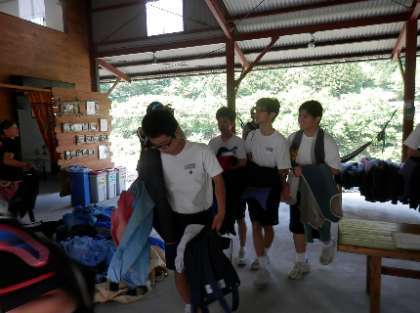 午後の部ラフティング会場に到着、ウエットスーツに着替えます。