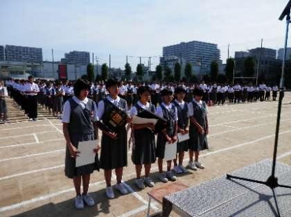 昨日行われた大阪市中学校春季総合体育大会で剣道部が素晴らしい結果を出してくれました。女子団体戦の部で 優勝! 女子個人戦の部で 優勝、準優勝、第3位と上位を独占しました。日頃の練習の成果が実った一瞬でした。次の大会は、今回以上に厳しい戦いになると思います。今回の結果に満足することなく、さらに上を目指してください。