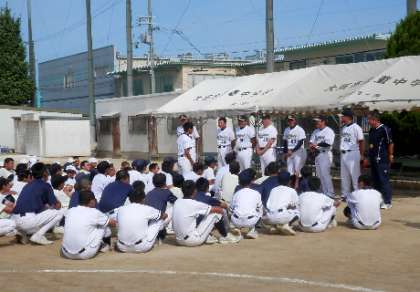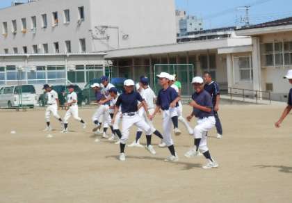 2ブロックの中学校の野球部員が集まり、本校のグランドでオリックスの野球教室が行われました。元プロ野球選手OBを講師としてウオーミングUp、キャッチボールの指導を受けた後、バッテリー、野手、外野手、走塁、コンディショニングに分かれてそれぞれ講習を受けました。各チームとも今後の練習に取り入れ、さらにレベルアップを図って下さい。オリックスのスタッフのみなさん、ありがとうございました。