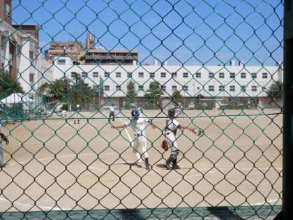 本日、大阪市秋季総合体育大会軟式野球の部でベスト8入りをかけた試合が高倉中学校で行われました。本校は、第二試合で本庄中学校と対戦、相手投手の速球に苦しめられながらも、6回裏に満塁からスクイズで1点をとり、7回表の相手の攻撃を必死に守り抜き1−0で勝利しました。明日は、ベスト4入りをかけて、白鷺中学校と対戦します。