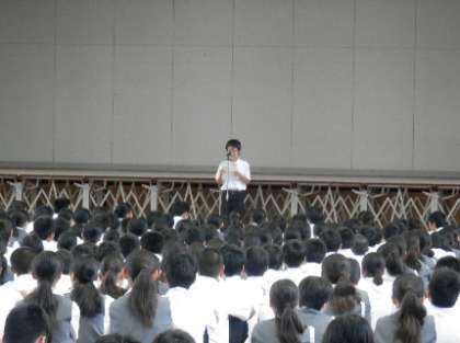 体育館で全校集会
