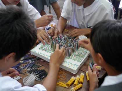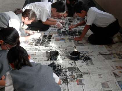 明日は、土曜授業。文化祭の練習に2時間取り組みます。今日の6限も文化祭の取り組みでした。1年生の取り組みの様子。細かい作業です。いったい何ができあがるのでしょうか?