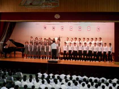 3年生の音楽コンクールを3.4限に行いました。3年生では、同じ課題曲に全学級で取り組みました。さすがに3年生。3年間の積み重ねがしっかり表れたコンクールになりました。「大切なもの」「名づけられた葉」の曲に込められたそれぞれの学級の想いをメッセージとして唄いきりました。