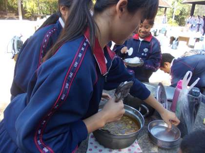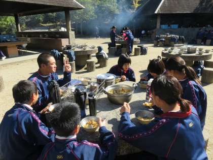 一生懸命力を合わせて作ったけれど、ルウはシャブシャブ、生煮えの野菜はガリガリ、ゴリゴリというのもありましたが、好天の下、みんなで作ってみんなで一緒に食べるカレーライスは最高でした。午後3時50分、全員無事に帰校しました。