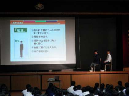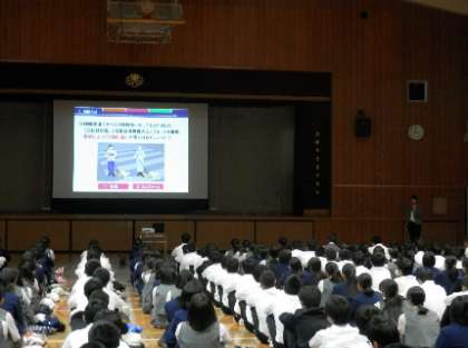 3年生では、高校受験に向けて、面接の受け方や標準服の正しい着こなしについて外部から講師を招き、講話していただきました。面接会場での立ち居振る舞いなどについて、守るべきポイントを丁寧に説明していただきました。いつも通りの行動が、格好良くスマートに相手に好印象を与えるようになりたいものです。