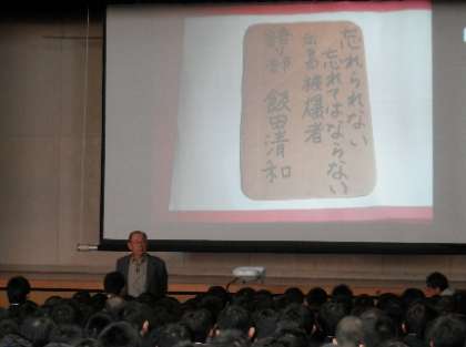 土曜授業を行いました。本日は、平和学習として、「忘れられない、忘れてはならない」というテーマで、広島で小学校3年生の時に被爆された飯田さんに来校いただき「戦争の恐ろしさ」と「命の大切さ」について、8月6日の朝、小学校で被爆し、一瞬にして周りの世界が変わった様子などについて、生々しく講話していただきました。
