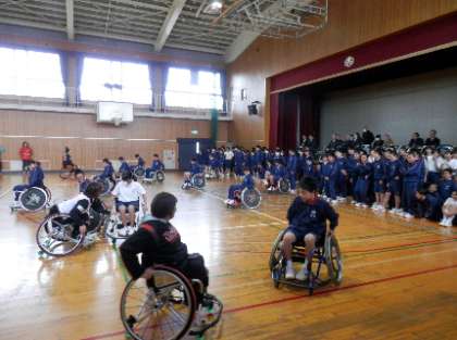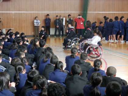 「なぜ車椅子バスケットボールをしようと思ったのですか?」などの生徒の質問にも丁寧に答えていただきました。貴重な話を一杯聴かせていただきました。