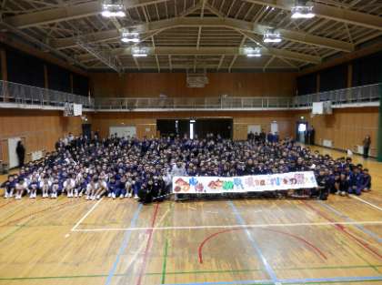 最後は、生徒代表から「お礼の言葉」を贈り、記念撮影を行いました。明日からの大会ぜひ頑張って下さい。本校生徒の感謝の気持ちを横断幕に乗せて試合会場で応援します!