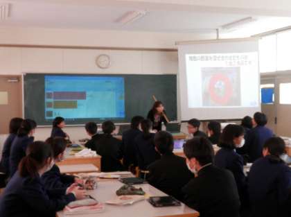 本日は、午後からICTの公開研究授業を行いました。5限に1年生の社会、国語、2年生の家庭科、6限に2年生の男子体育、英語、特別支援教育で実施しました。校外からも先生方が参観に来られました。