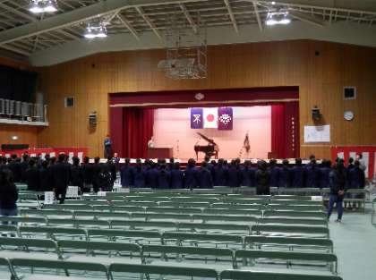 入学式は、午前10時開式の予定です。新入生は、午前9時15分頃には登校して下さい。受付を済ませた後、中庭に学級ごとに整列します。遅れないようにして下さい。