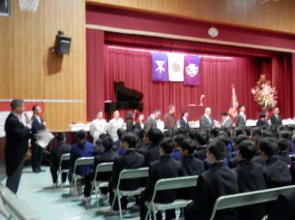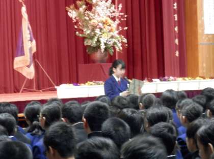 在校生代表「歓迎のことば」↑  学級担任、教科担当等の教職員の紹介↓
