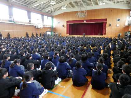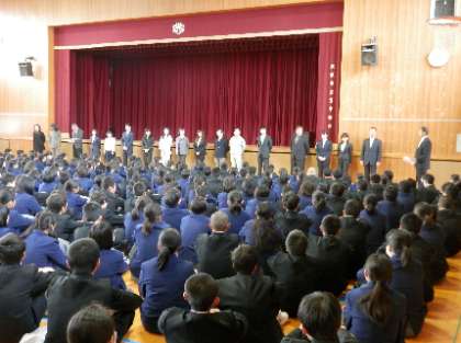 全校生徒が体育館に集まり、始業式を行いました。始業式の前には、新しく本校に着任された教職員のみなさんの紹介も行いました。