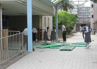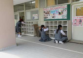 清掃終了後は、各学級の美化委員が清掃区域の点検も行っていました。