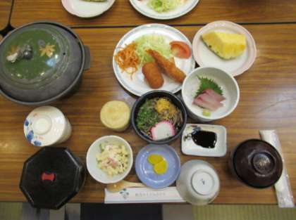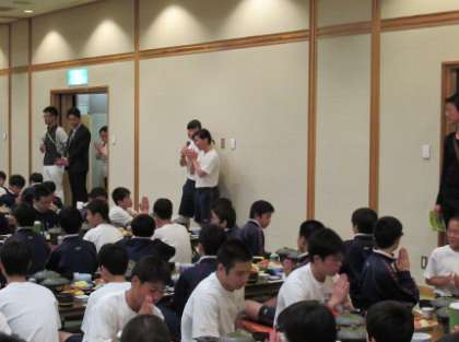 夕食は、大広間でいただきました。今日一日の疲れを癒す夕食です。食事係より「いただきまーす」