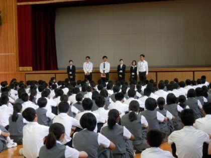 3年生では、進路選択についての学年説明を行いました。6月21日には、3年生を対象としたチャレンジテストも行われます。体育大会などの行事もありますが、勉強の方は並行して、日々の学習をしっかり積み上げましょう。進路先の選択については、この夏休みが大きなチャンスとなります。教室や廊下に掲示されている進路情報を注意して確認しましょう。今日は、学年集会で実習生からも話もありました。