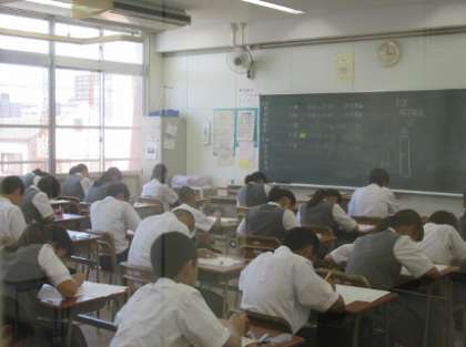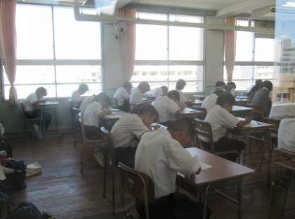 今日から9月。朝晩は、随分過ごしやすくなりましたが、日中はまだまだ残暑が厳しい日が続いています。本日は、3年生が実力テスト、1.2年生は課題テストに取り組みました。
