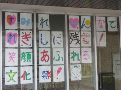 正面玄関に今年度の文化祭スローガンを掲示しました。10月20日(金)の文化祭本番に向けて、各学年の取り組みが進み出しています。