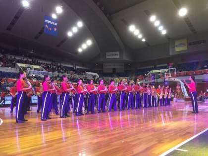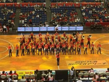 プロバスケットボール大阪エヴェッサの試合前セレモニーで、吹奏楽部が演奏し、両チームへの応援とともに、試合前の会場を盛り上げました。