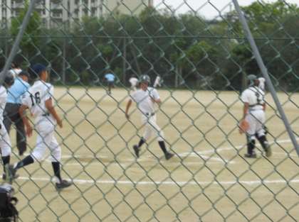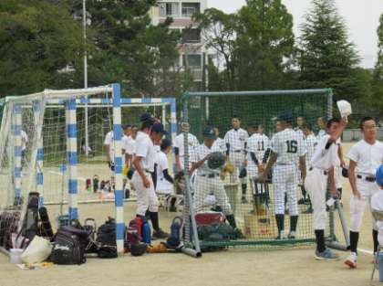 本日、大阪中学校総合体育大会軟式野球の部のベスト16の試合が吹田市立竹見台中学校で行われました。本校の野球部は、第4試合で五箇荘中学校と対戦し、4−1で勝利しました。
