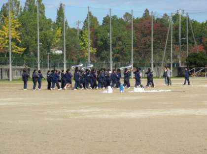 11月19日(日)に大阪城ホールで開催される全日本マーチングコンテストへ大阪代表として出場する吹奏楽部が、11日(土)と12日(日)、鶴見商業高校のグランドをお借りして練習に励んでいます。中学校のグランドが部活動の大会等と重なり使用できないことから鶴見商業高等学校にお願いし練習会場として受け入れていただきました。地域住民の方々には、演奏による音で少しご迷惑をおかけいたしますが、ご理解のほどよろしくお願い申しあげます。