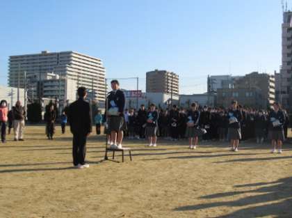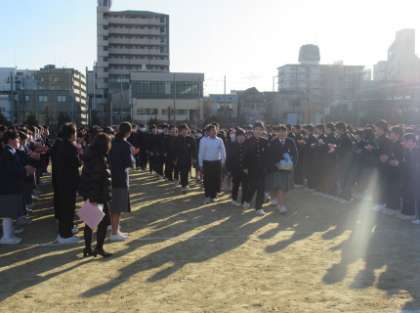 3年生の代表が1.2年生に「心のこもったお礼の言葉」を述べた後、3年生が1.2年生の間を歩いて教室へ向かいました。