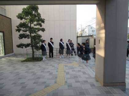 生徒会選挙、立ち会い演説会が15日に行われます。朝の登校時には、正門玄関で立候補者のみなさんが朝のあいさつ運動に取り組んでいます。