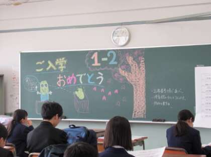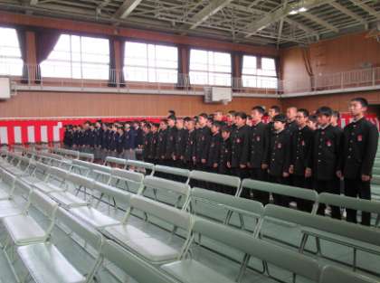 入学式が始まる前に在校生が歌の練習に取り組んでいました。大きな声で先輩らしく、校歌や歓迎の歌を歌いました。各学級にカバンを置き、入場移動の合図を待っています.