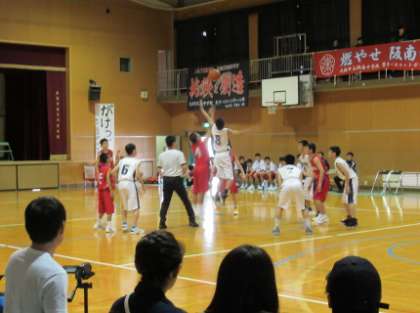 春季総合体育大会バスケットボール部男子の部で大阪市ベスト4を掛けた試合が、本日、豊崎中学校の体育館で行われました。本校は、阪南中学校と対戦。第1クウォーターはリードされて終了、第2クウォーターで追いつき20対20の同点で終了。第3クウォーターで再びリードされ、なかなか追いつけず、第4クウォーターの残り6秒、45対44で、1点差を追う展開となりましたが、残念、後もう一息というところで無情なホイッスルが響きました。