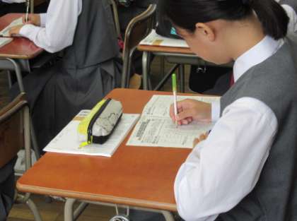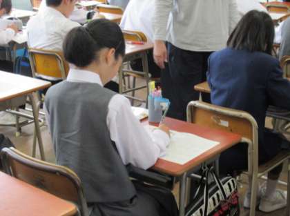 1年生書写の授業を紹介します。硬筆の授業でしたが六度法を取り入れて、整った文字を書く練習をしていました。紙面に向かう正しい姿勢も美しい文字を書く大切なポイントになると思います。心を込めて美しい文字を書く習慣は本当に素晴らしいことだと思います。
