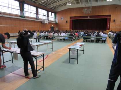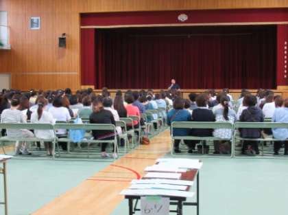 午後3時から第1回目の進路説明会を行いました。今回の説明会は、全学年の保護者の方々を対象に行いました。本日は、足下の悪い中、約280名の保護者の方々に来校いただきました。ありがとうございました。