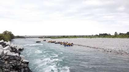 ラフティングも無事終了し、現在、バスに乗って宿舎に向かっています。