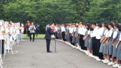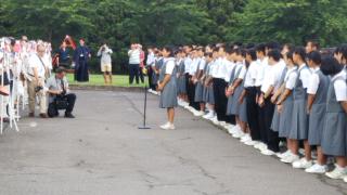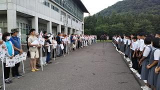 たくさんの受け入れ家庭の方々に待っていただいていました。入村式では、生徒代表から挨拶を行ない、グリーンツーリズム受け入れ家庭と妙高市農林課のご代表から歓迎の言葉をいただきました。