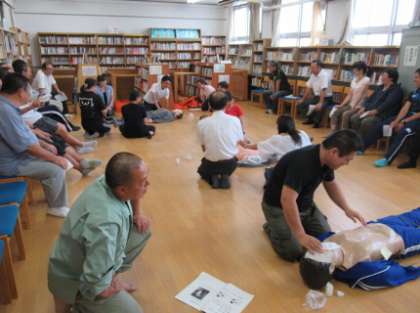 7月4日(水)放課後に教職員の研修会として「救急救命」研修会を行いました。心臓マッサージや人工呼吸、AEDの取り扱いについて学びました。