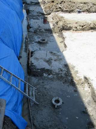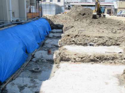 土台となる基盤づくりがいよいよ始まっています。地中深く約17mほどの深さまで基盤となるコンクリート柱が何本も埋め込まれました。どのような建物でも基盤となる岩盤まで届く支柱を埋め込み、固定するそうです。何事も基礎が大切です。
