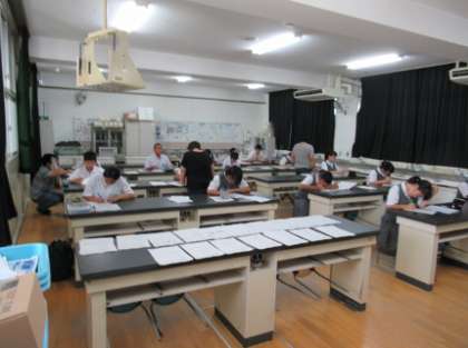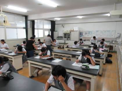 3年生の希望者を対象に、実施している学習会。暑い中でしたが、課題プリントに一生懸命取り組んでいました。