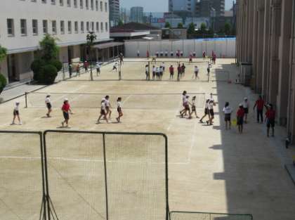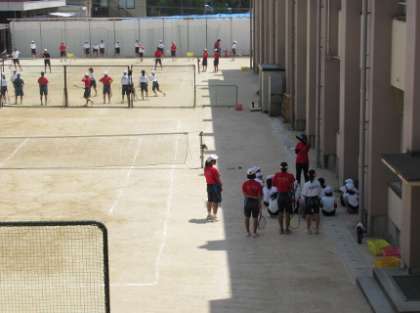 厳しい暑さのため、予定していた時間より短くし、約1時間、中庭で中学生と一緒に活動しました。