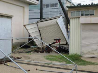 本日は、台風による暴風に伴い、臨時休業となりました。大阪市内でもかなりの被害が出ています。今も停電している地域もあり、大変な状況が続いています。昼間は、中学校でも大きな影響を受けました。現在建設中の工事現場の囲い塀が倒れました。中庭の木も1本倒れ、グランドの倉庫も3つ崩壊しました。明日の片付けが大変な状況です。