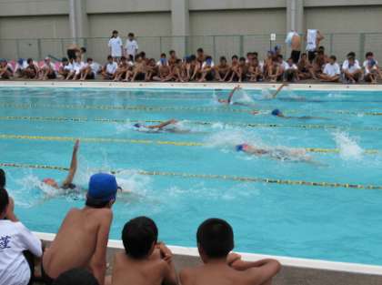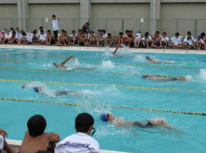 1年生の水泳大会を行いました。学年で種目内容も工夫され、プールサイドから各学級の仲間に声援を送る声が大きく響いていました。1年生にとっては、初めての水泳大会ということもあって、注意を受ける場面もありましたが、みんなで協力する姿も随所に見られました。